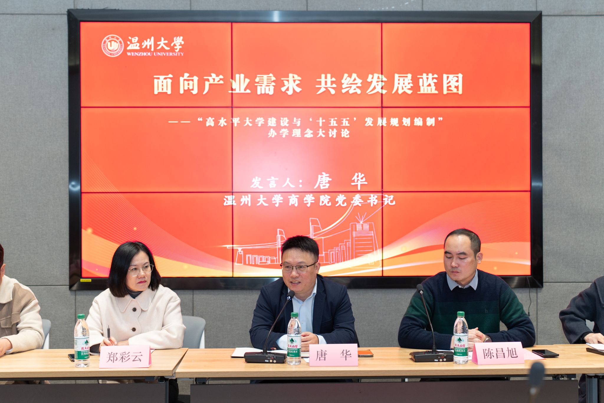 会议伊始,唐华书记详细介绍了温州大学商学院的办学实力、学科特色与发展愿景。围绕学院“十五五”发展规划中的人才培养模式、专业布局优化等重点议题,唐书记现场征求与会企业家的意见建议,充分体现了学院坚持开放办学、以社会需求为导向的服务理念。