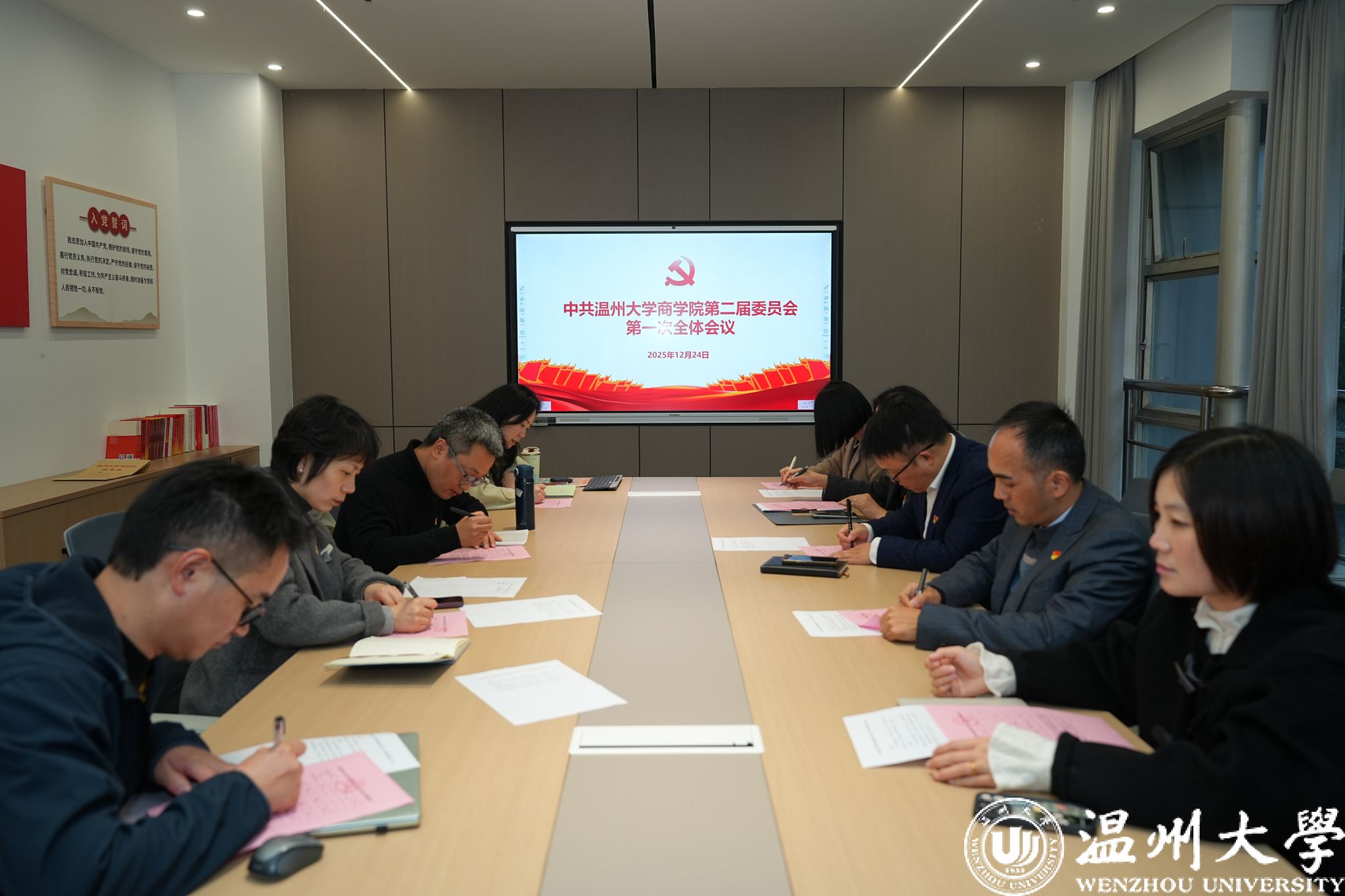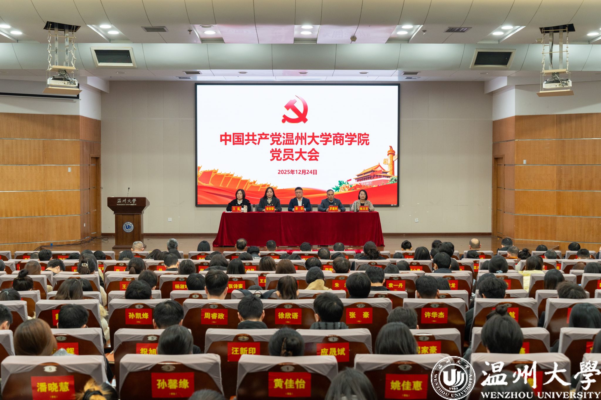 12月24日,温州大学商学院党员大会在北校区信息楼报告厅顺利召开。商学院241名师生党员齐聚一堂,共商学院发展大计、共绘党建工作新蓝图,并选举产生了新一届温州大学商学院党委委员、纪委委员。会议由学院党委副书记曾蓓蕾主持。