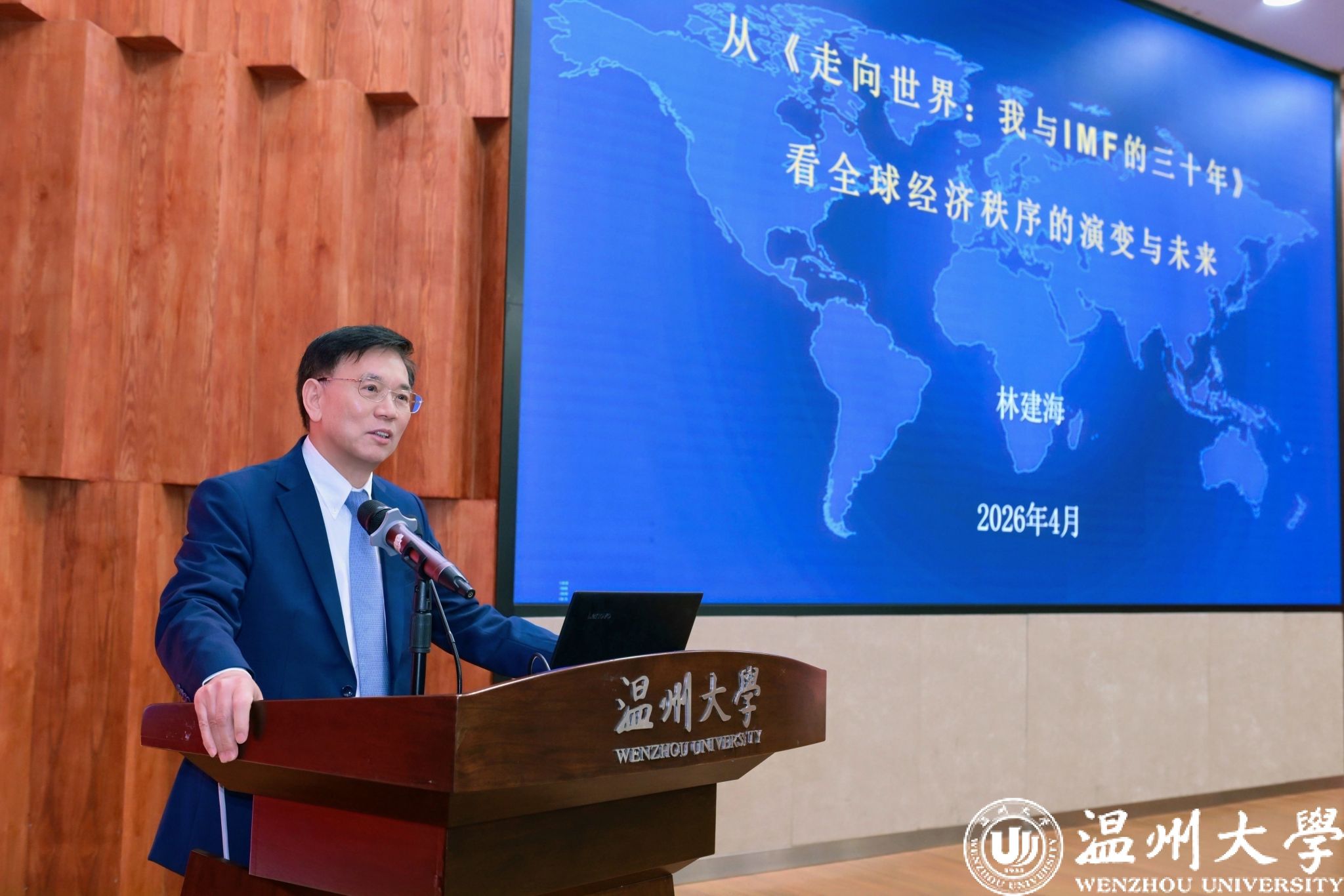 主旨演讲环节,林建海教授立足全球经济格局,带大家回顾了布雷顿森林体系崩溃后的全球经济秩序变化,强调国际经济治理的重要性,深度剖析了当前国际经济秩序面临的挑战,认为中国角色已从参与者到贡献者,再到规则塑造者。林建海教授结合温州民企发展实际,重申了知识、信心与长期主义的核心价值,提出面临的挑战与机遇。他鼓励温州企业家要明确自身优势,把握新兴市场趋势,以本地化经营与长期主义穿越周期,并指出绿色能源、医疗健康、AI将是未来发展的重点赛道。林建海教授还对在场青年学子提出殷切期盼,强调知识力量与未来信心的重要性,鼓励终身学习与跨学科发展。