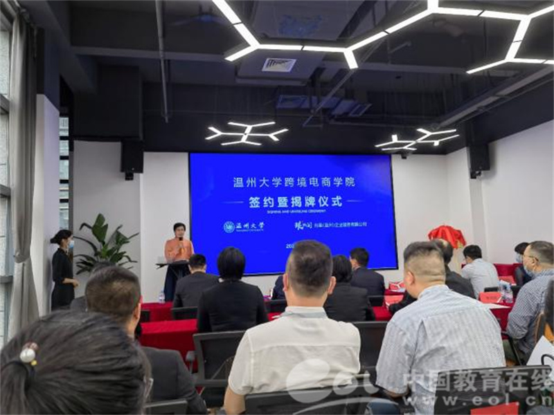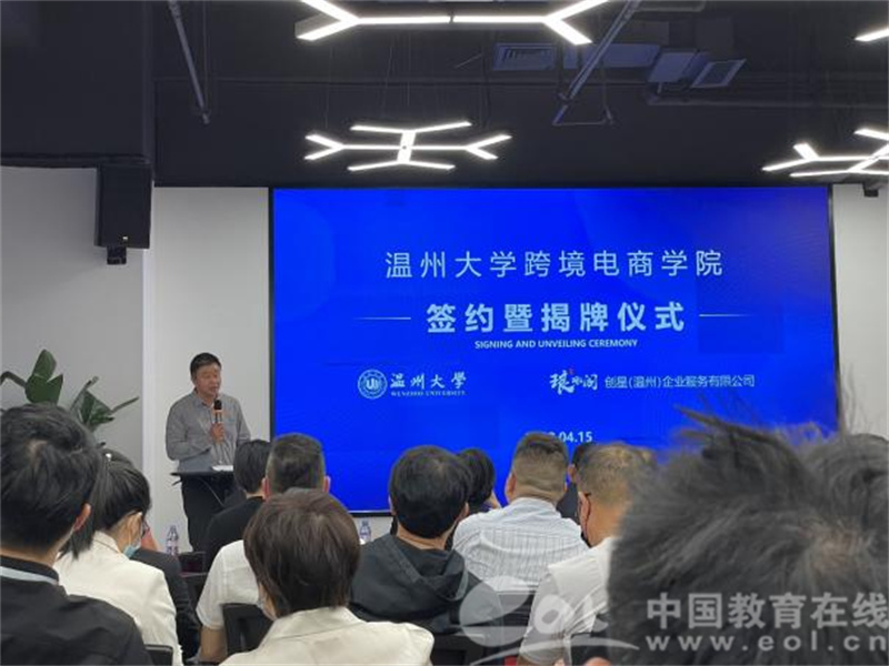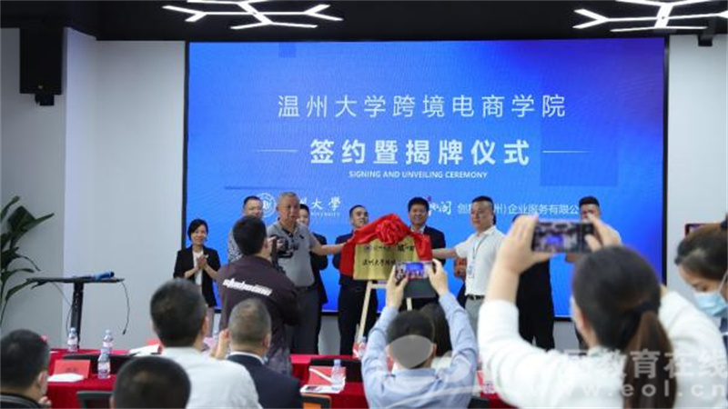 中国教育在线浙江站讯 (记者 陈显婷 通讯员 唐华)近日,温州大学与创星(温州)企业服务有限公司共建温州大学跨境电商学院签约暨揭牌仪式成功举办。温州大学跨境电商学院的成立将对温州跨境电商生态作出重大的贡献。仪式由温州大学商学院党委书记郑彩莲主持。