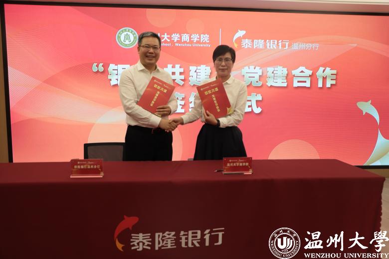 为丰富党建工作内涵,创新党建工作模式,推动基层党建实现“互联共建、互助共赢”,2022年5月20日下午,泰隆银行温州分行与温州大学商学院举行了“银校共建”党建合作签约暨就业实习基地授牌仪式。