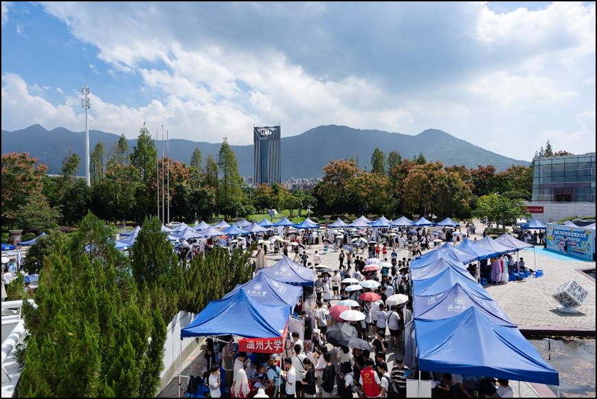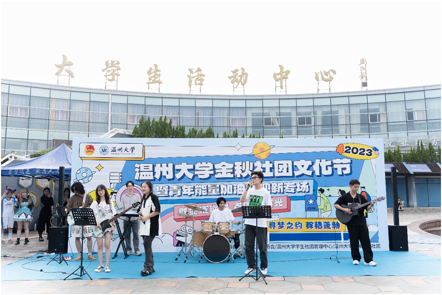 舞台区内,吉他协会、国标舞社等10余个学生社团带来的节目为现场的同学传递着青春的活力与能量,而由温州大学红楼戏曲社、朗诵协会等学生社团带来的《打金枝》《红色的括苍山》等节目,则是让同学们沉浸式感受到中华优秀传统文化魅力及浙南浓厚的红色文化基因。