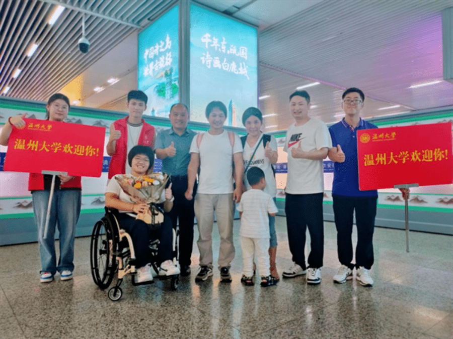 在今年的迎新活动中,温州大学迎来了一位特殊的新生,她就是温大商学院2023级财务管理专业的“轮椅女孩”蔡同学。学校专门为她开设了一条从高铁站直通寝室的“绿色通道”。