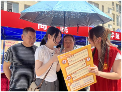 为了增强新生反诈防骗意识,提高自我保护能力,校园中有一支身穿红马甲的“反诈”卫士——温州大学商学院金融公益宣讲员们也在忙碌的“工作”中,筑牢校园反诈“安全防线”。