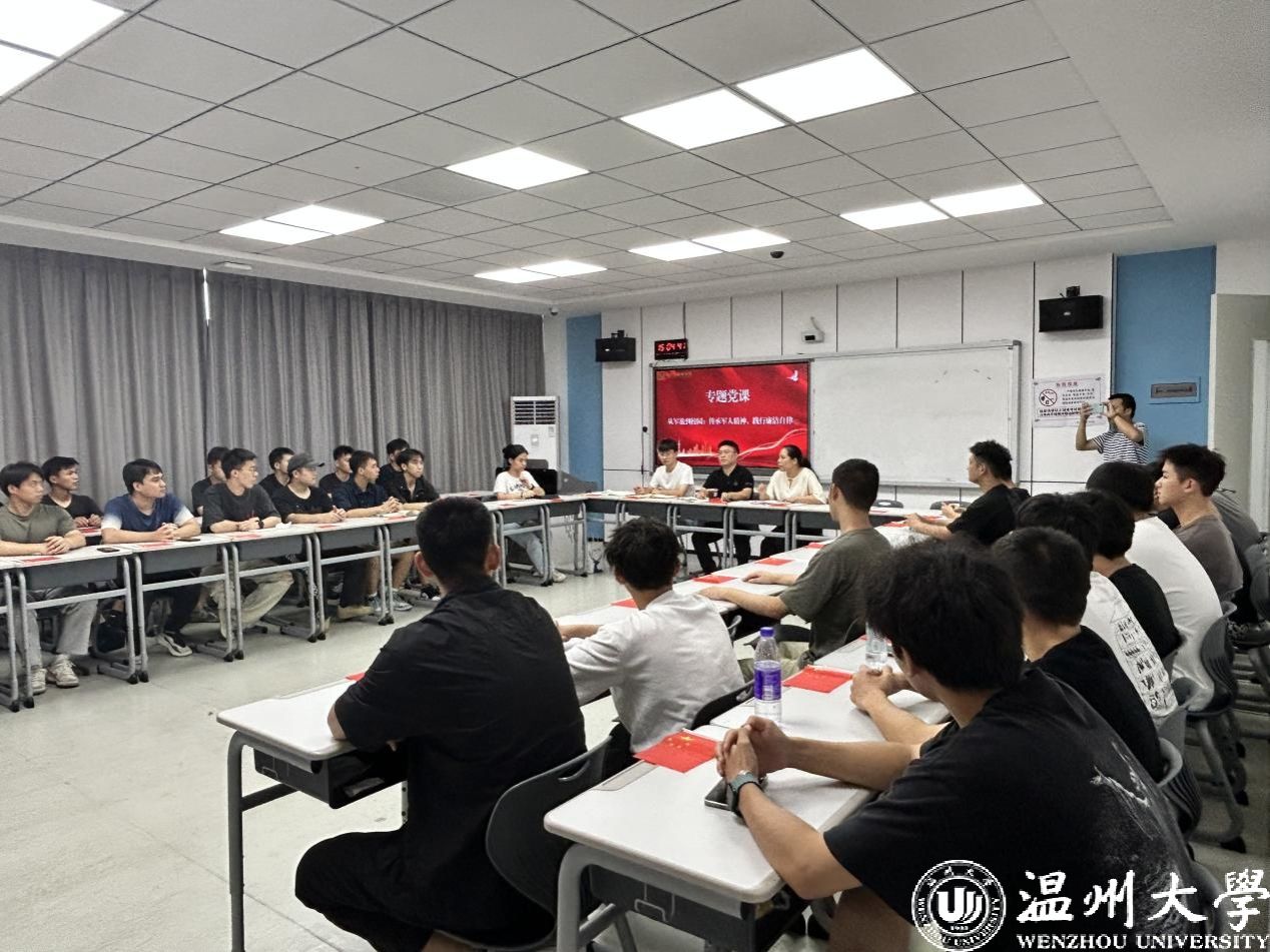 “五星红旗迎风飘扬,胜利歌声嘹亮,歌唱我们亲爱的祖国,从今走向繁荣富强……”高亢的歌声在飘荡,一面面红旗在飘扬。在新中国成立75周年的辉煌时刻,温州大学商学院开展“共庆华诞,续写辉煌”座谈会,30余名退役大学生士兵齐聚一堂,用歌声、心声向祖国致敬。曾蓓蕾副书记在开场致辞中强调了军人精神在当代大学生中的传承意义,为退役大学生士兵在校园中如何积极发挥先锋模范作用、成为激励同伴的重要力量提供了方向。她还为在场学生带来了主题为“从军旅到校园——传承军人精神,践行廉洁自律”的专题党课,鼓励退役大学生士兵把军队中的优良传统和廉洁作风在校园里发扬光大,成为校园中一道靓丽的风景线。