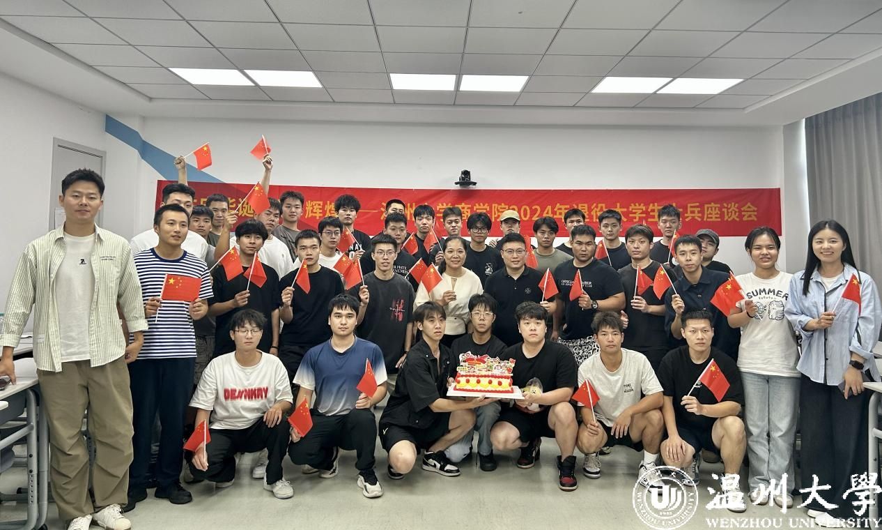 座谈会的成功举办,不仅为退役大学生士兵搭建了交流的平台,也进一步推动了校园文化建设,增强了学生的爱国情怀和责任感,以实际行动庆祝新中国成立75周年,续写辉煌。据悉,今年是温州大学商学院招收退役大学生士兵的第三个年头。退役大学生士兵,这个特殊的学生群体,如何将他们在军旅生活中锻造的优良品质传递给更多同学的同时,保持学业成就,一直是学院关注的重要议题。温州大学商学院也将始终围绕“立德树人”根本任务,扎实做好退役大学生士兵教育管理服务工作,确保退役大学生士兵退伍不褪色、不退志,助力退役大学生士兵返校复学后更好地成长成才,为社会主义现代化强国建设做出应有的贡献!