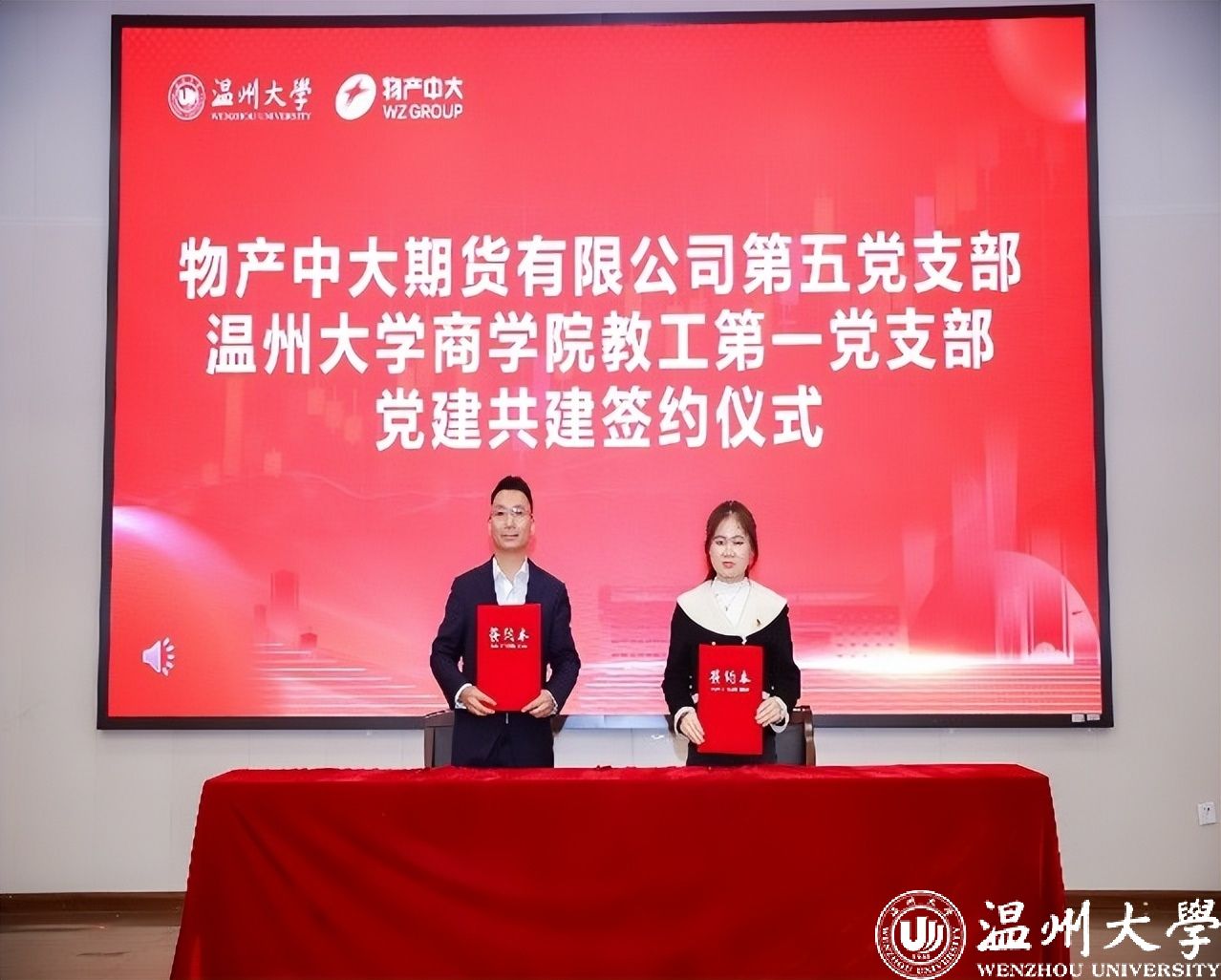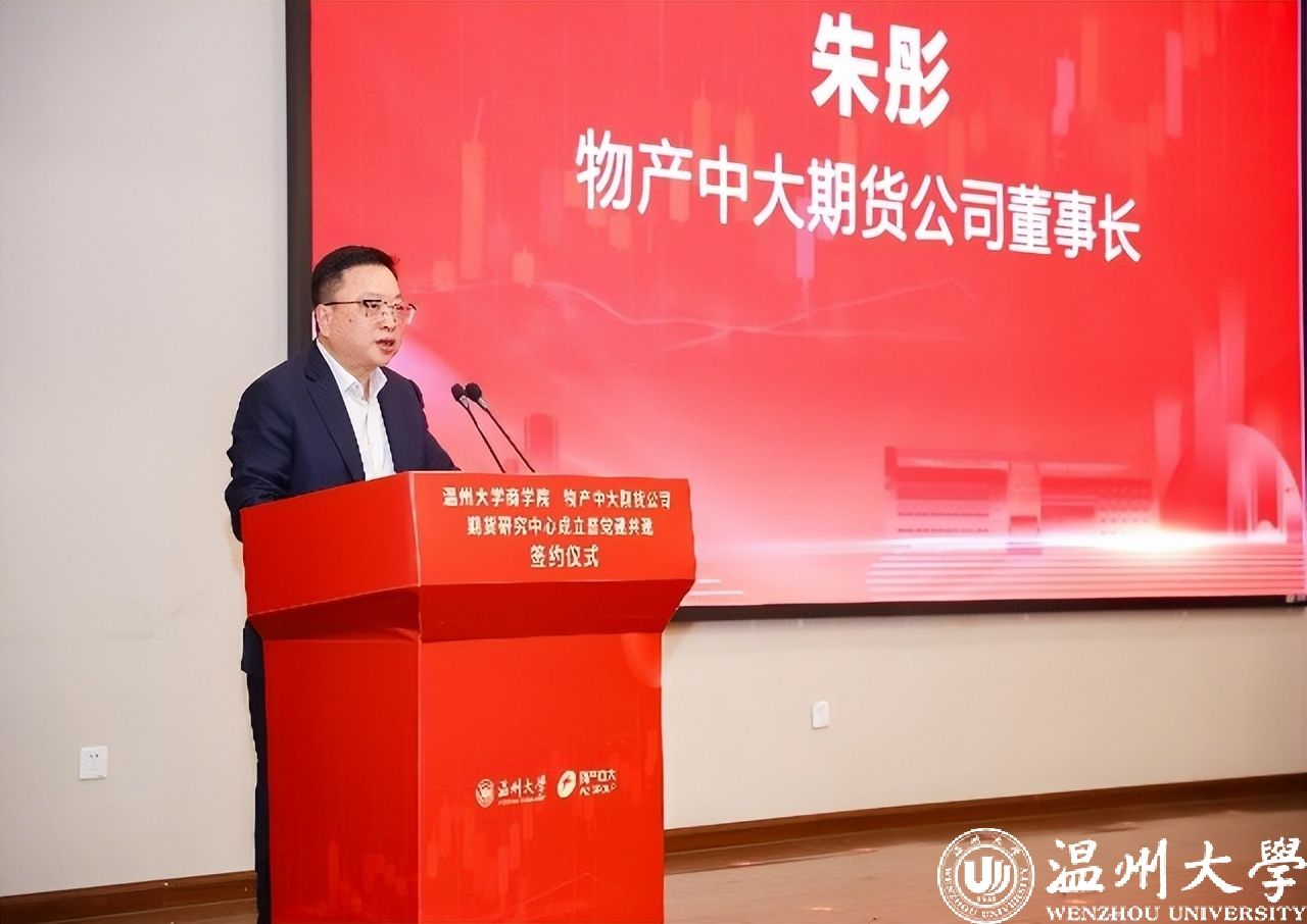 3月12日,由温州大学与物产中大(期货公司)联合共建的“物产中大—温州大学期货研究中心”成立仪式在温州大学隆重举行。同时,温州大学商学院第一党支部(全国样板党支部)也与物产中大(期货公司)签署了党建共建协议。该中心的成立标志着浙江省期货领域产学研合作迈出重要一步,旨在推动期货行业理论创新与实践应用深度融合,为区域经济发展注入新动能。温州市人民政府副秘书长沈显克、平阳县副县长朱邦丰、物产中大期货有限公司董事长朱彤、温州大学副校长王军等领导及各界嘉宾出席活动。