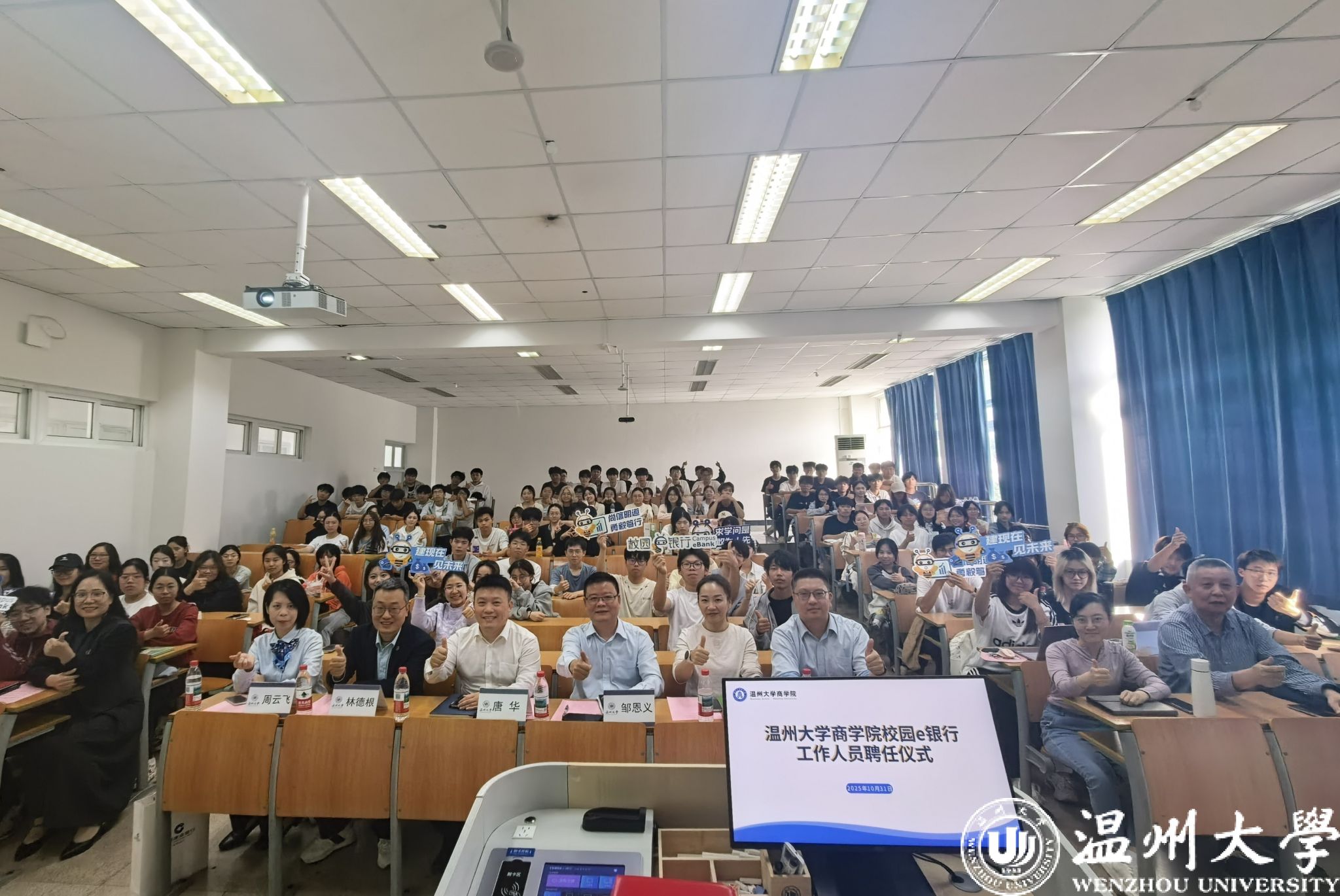 中国教育在线浙江站讯 (编辑 占尘雪 通讯员 周洁文)在温州大学商学院,一群在校生不仅接触金融理论,更提前“上岗”成为银行行长和客户经理。10月31日,温州大学商学院校园e银行新一届工作人员聘任仪式在北校区2-401教室举行。此次仪式融入2025级金融工程专业导论课堂,以“实践育人”为核心,生动展现了学院“银校共建”党建品牌的深化成果。