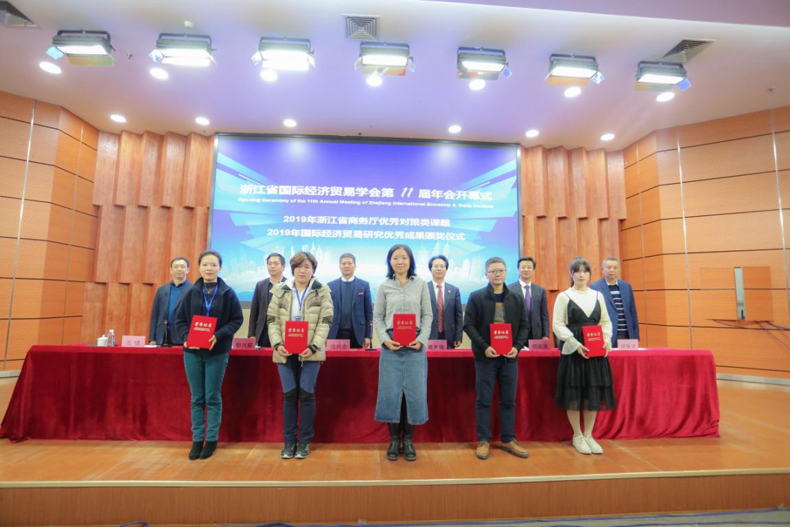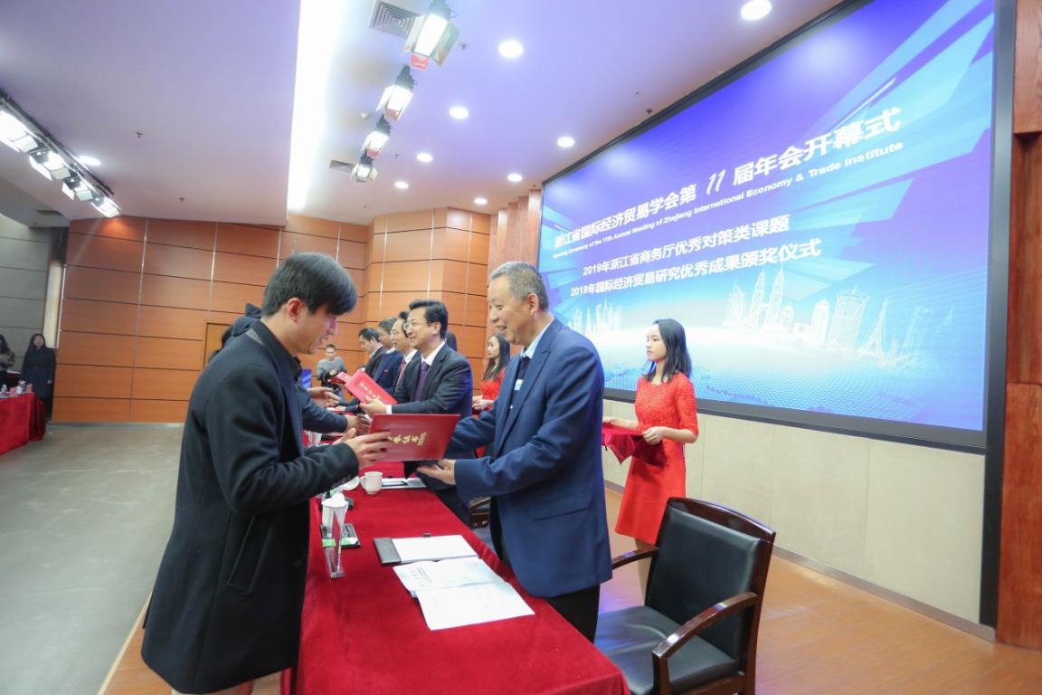 年会开幕式由学会副会长、浙江商务研究院院长兰健主持。大会对学会2019年国际经济贸易研究优秀成果奖获奖作者进行了表彰。温州大学党委副书记庄兴忠、浙江省社科联社团处处长郁兴超致辞。开幕式上,庄兴忠副书记介绍了温州大学办学成绩和温州大学商学院的办学特色。