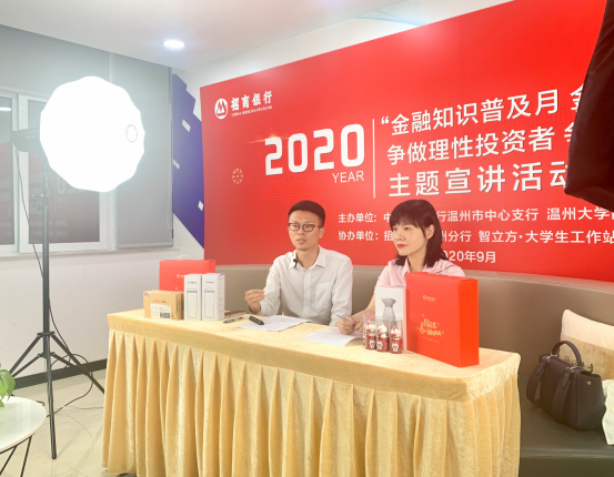 9月27日晚,招商银行温州分行联合中国人民银行温州市中心支行、温州大学商学院、智立方·大学生工作站开展“校园贷、网络诈骗,那些你不得不注意的事”网络直播活动,招行两位主播,为温州大学城的师生带来一场内容丰富的金融知识线上直播,吸引了2500余人次师生线上学习和互动,部分班级和寝室纷纷组织学生共同学习。
