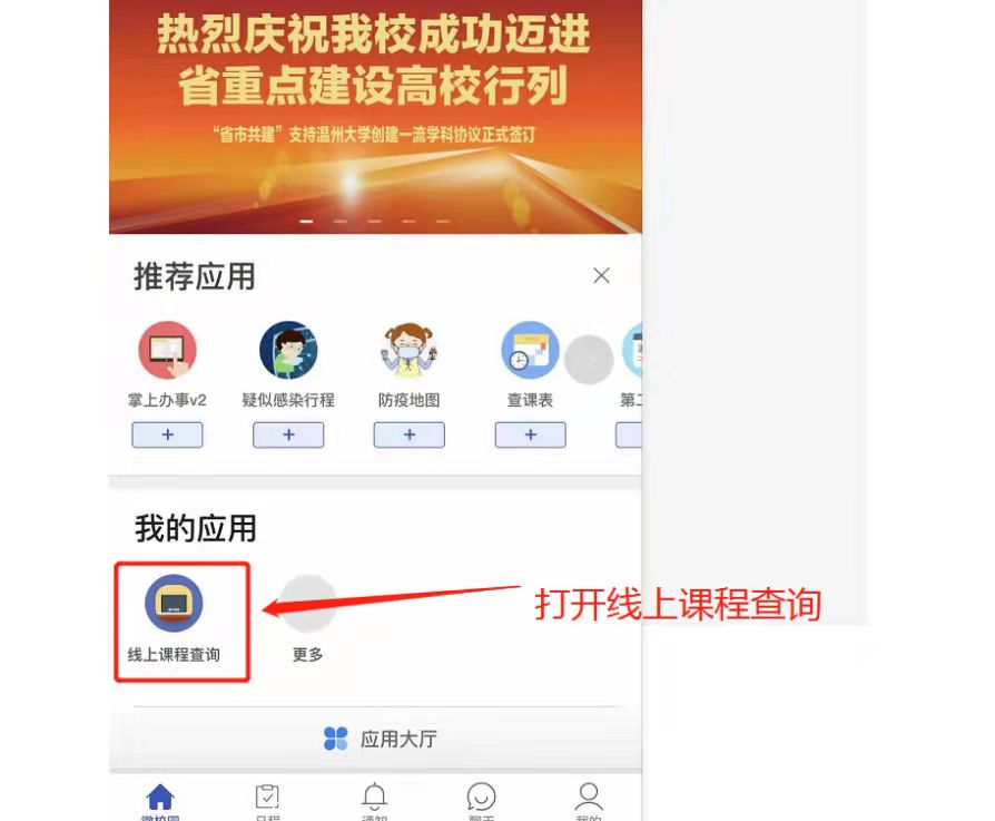 为确保大家能够及时、准确的获知第一周线上课程的上课方式,学校推出我的温大APP掌上服务“线上课程查询”功能,轻松查询到自己所选课程的教师联系方式、线上开课信息、教学平台或学习工具、线上教学专用群号码等信息,快来查看并加入线上课程专用交流群吧!