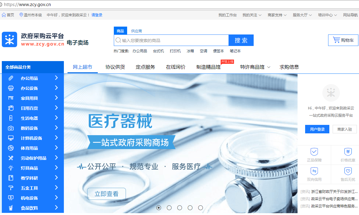 政采云网址:https://www.zcy.gov.cn,平台首页如下: