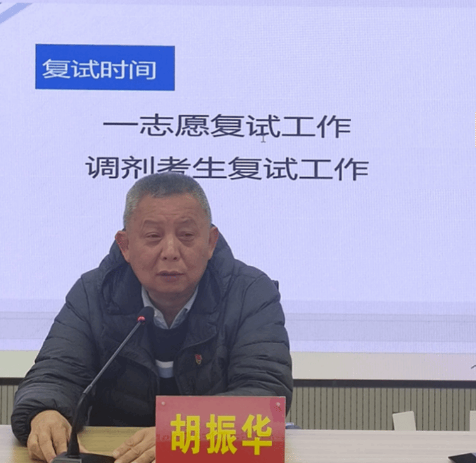 最后,胡振华院长强调详细此次会议的重要性。说明了一志愿录取人数,并强调了此次会议的重要性,是学院的一件大事。并详细说明此次研究生录取工作要分四步走,要求全院师生严格按照学校部署,全力以赴,不掉链子,助力研究生复试及调剂工作的顺利进行。