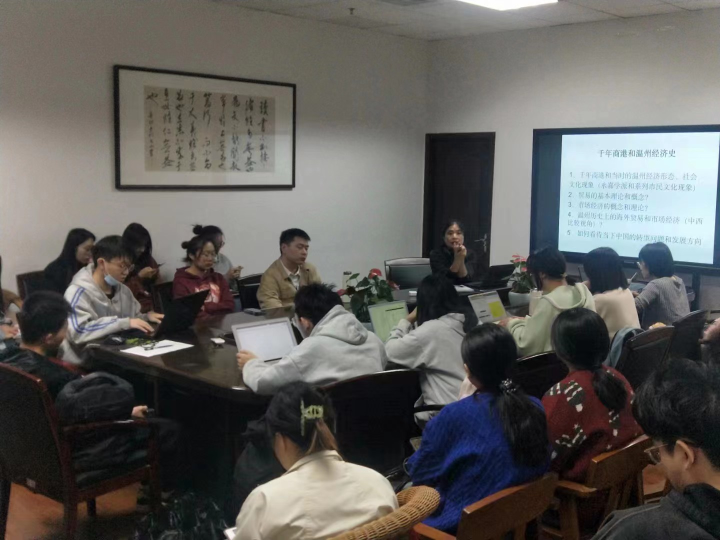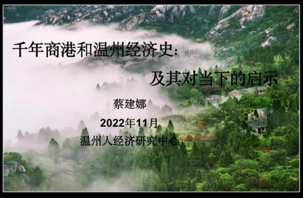 2022年11月22日下午,温州人经济研究中心举办一场 “千年商港和温州经济史:及其对当下的启示”为主题的学术沙龙。本次沙龙主由温州大学温州人经济研究中心蔡建娜研究员做主旨报告,温州大学商学院应用经济学的研究生参加了本次沙龙。