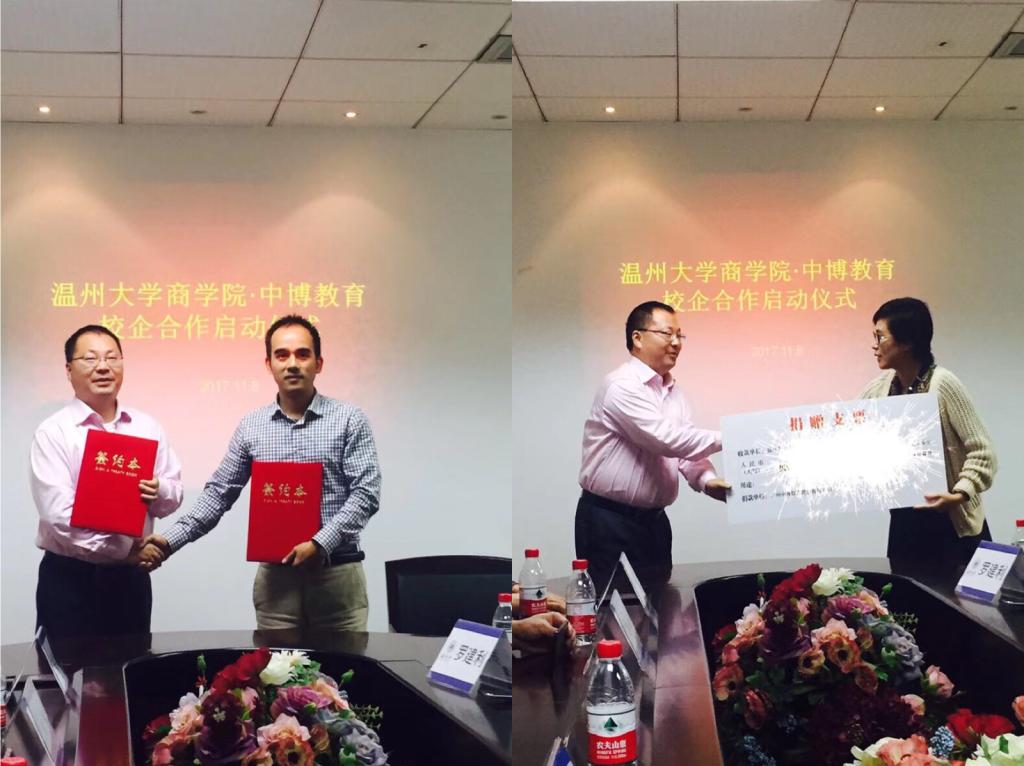 2017年11月8日周三下午13:30温州大学商学院·中博教育校企合作签约仪式在温州大学商学院A222会议室举行。