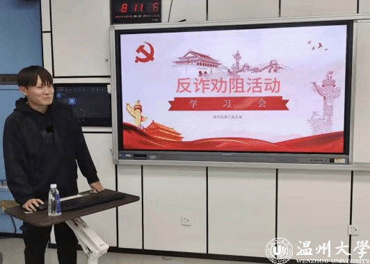 本科生第三党支部则由支部书记亲自讲解真实案例,分析受害者上当原因,提醒同学们提高警惕,不听、不信、不转账、不点击陌生链接。
