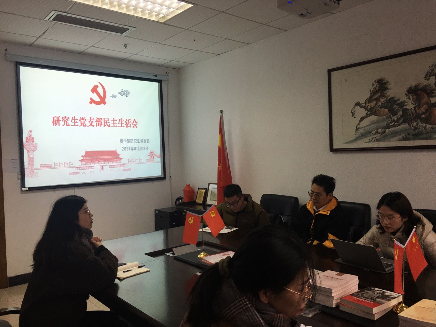 2021年1月8日上午,商学院研究生党支部在A223召开2020年度民主生活会,本次会议紧密联系支部工作,联系支部成员个人思想、学习和工作实际,进行自我检查、党性分析,开展批评与自我批评,提出改进措施,明确努力方向。支部书记韩新华老师及全体党员同志出席会议,会议由支部书记助理梁城超同志主持,共三项议程。