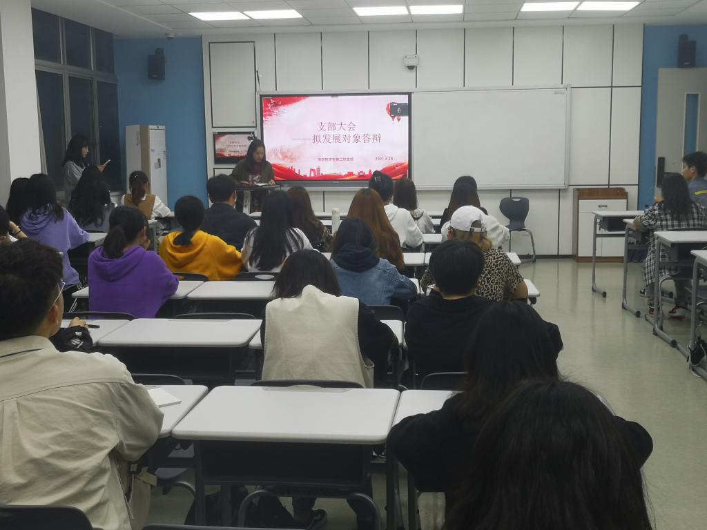 2021年4月30日晚上19:10,商学院学生第二党支部在北二107教室举行了入党积极分子推发展对象答辩大会。本次大会由党支部书记金瑞老师及30名正式党员、29名预备党员参加,党支部书记金瑞老师担任主持。