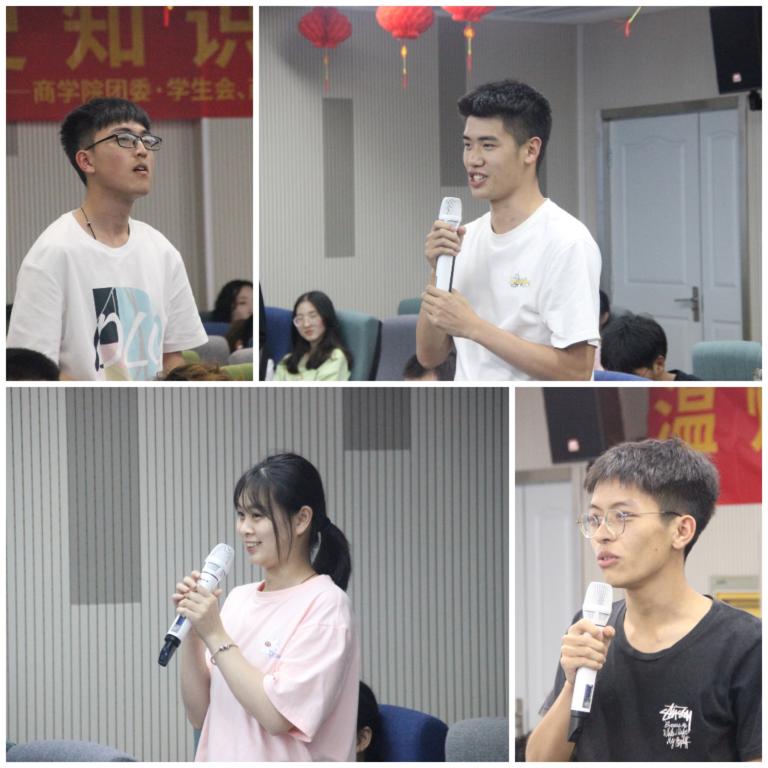 在现场互动环节,观众们也踊跃参与,积极举手抢答,将活动推向了高潮。短暂的休整过后,竞赛引来了最为紧张刺激的风险题环节。各组选手都全力以赴,争取在最后阶段或稳固优势或力挽狂澜。经过激烈角逐,最终中国未来队的陈博、贾康彪、韩前同学获得一等奖,人民当家作主队的姚佳、李晗、潘康昱同学获得二等奖,星星点灯队的杨卓栋、张祥昊 、蔡炫阳同学和楠萌王队的解宇萌、胡亚楠、王洁同学获得三等奖,韩前同学获得MVP奖,蔡威薇同学获得冲锋奖。此次竞赛充分展现了商学院同学们丰富的党史知识储备和良好的精神面貌。