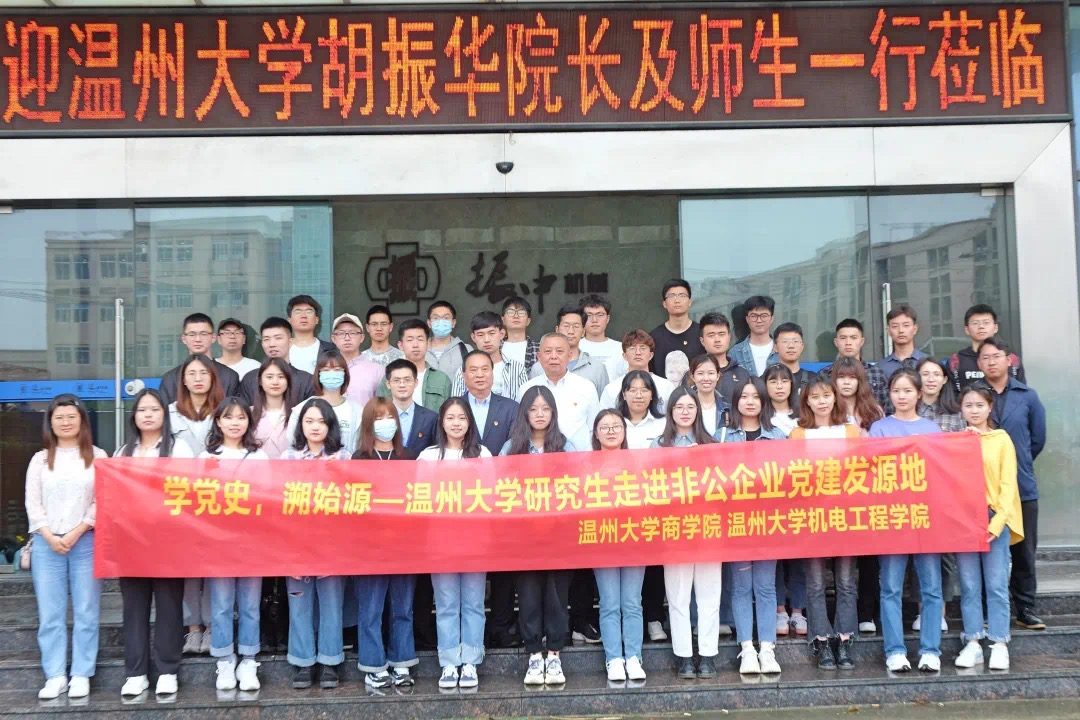 5月19日,围绕“学党史,溯始源,展温大青年风貌”主题,在商学院院长胡振华教授及相关研究生辅导员带领下,商学院与机电工程学院的六十余名研究生前往浙江振中工程机械有限公司(中国民企党建第一家)、中国非公企业党建始源馆和中共浙南一大旧址开展研学活动。