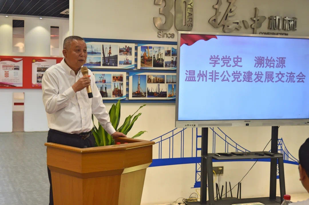 在振中公司的非公党建主题展厅里,同学们在讲解员的讲述中了解到,振中公司始创于1983年,随着第一台振动打桩机DZ30Y的试制成功,开启了企业进入桩工行业领域发展的新征程。三十年磨一创,三十年振中人的桩工情怀,造就了如今行业内响当当的“振中”品牌。1987年振中成立了全国第一个民营企业党支部,扬起了非公企业飘扬的第一面红旗,从此写下了温州非公企业党建探索实践之路的开篇一笔。