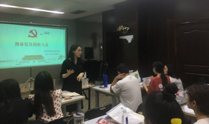 5月29日晚,商学院研究生党支部召开预备党员接收大会。本次会议共12名发展对象参与大会,30名党员参加本次大会,其中正式党员24名,预备党员6名。会议由支部组织委员陈丹女同志主持。