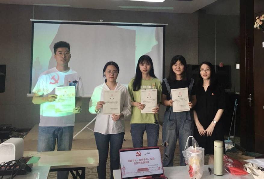 随后,由陈丹女同志主持商学院研究生党支部支委换届大会。大会根据支部现有党员人数,增设纪检委员一职,并根据前期支委报名,以及支部对几位同志的考察,最后提名徐婷燕为支部副书记、徐丽媛为支部宣传委员、邱海桐为支部纪检委员。大会通过后,由韩新华老师为各位支委颁发聘书。