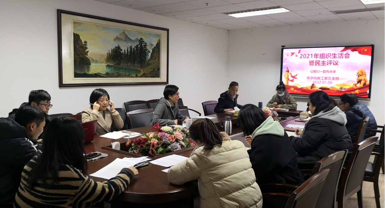 为提升党组织凝聚力、向心力与战斗力,更好地发挥基层党组织战斗堡垒作用和党员先锋模范作用,商学院教工第五支部于2022年1月8日下午在商学院A222会议室召开组织生活会暨民主评议党员活动。