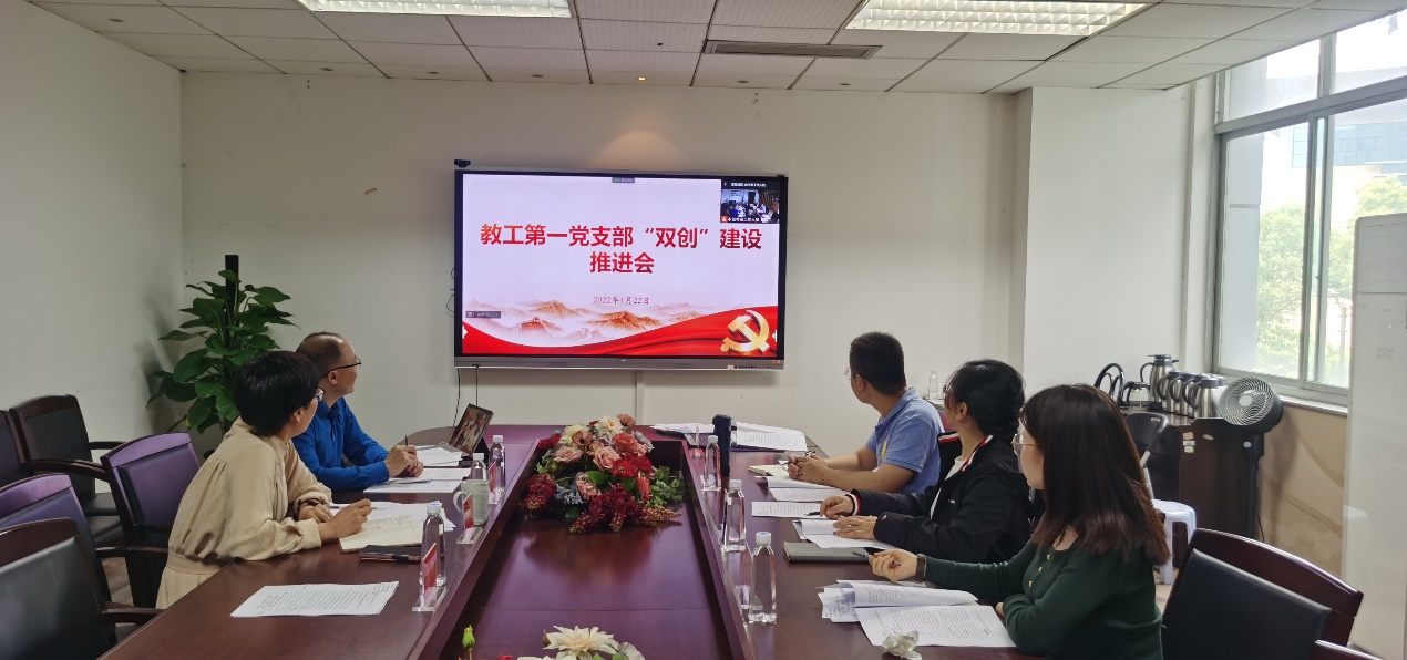 2022年4月22日上午,商学院教工第一党支部在学院党委的指导下,召开浙江省高校“双创”样板支部建设工作推进会,会议由支部书记周建华主持。