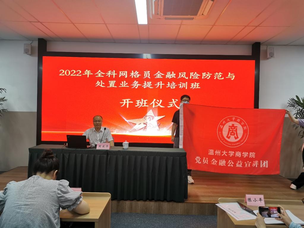 2022年9月16日(周五)商学院教工第一党支部书记周建华受洞头区金融办的邀请,在海霞培训中心为全区网格员做“金融反诈”的公益宣讲讲座。