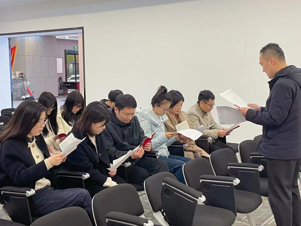 党章是党的总章程,对坚持党的全面领导、推进全面从严治党、加强党的建设具有根本性的规范和指导作用。习近平总书记强调:“学习党章是全体党员基本功,认真学习党章、严格遵守党章,是全党同志的必修课”。会上,支部书记黄兴利带领全体同志学习《中国共产党章程(修正案)》,深刻领会党章修正案的丰富内涵、精神实质和根本要求。支部书记黄兴利在领学中强调,此次党章的修改是对党的十九大以来我们党理论创新、实践创新和制度创新成果的深刻提炼,集中了全党智慧、反映了全党心声、体现了全党意志。要学原文悟原理,在逐字逐句的研读中进一步加深对党的二十大报告、党章的理解。