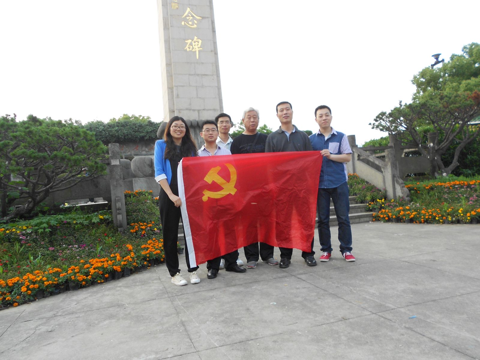 李志国教授,刘开练副书记和研究生党支部成员在革命烈士纪念碑下合影留念(一)