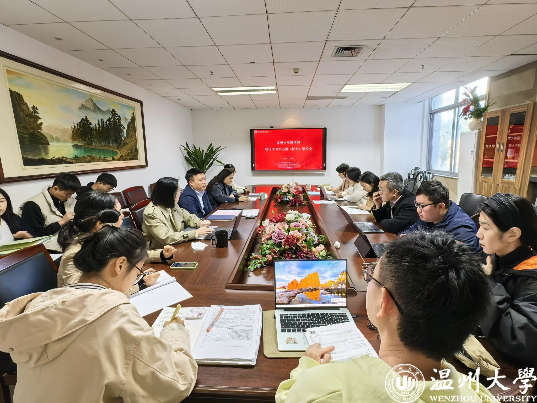 学院党委理论学习中心组成员、纪委委员、各科室负责人、组织员、各党支部书记、工会负责人参加学习会。