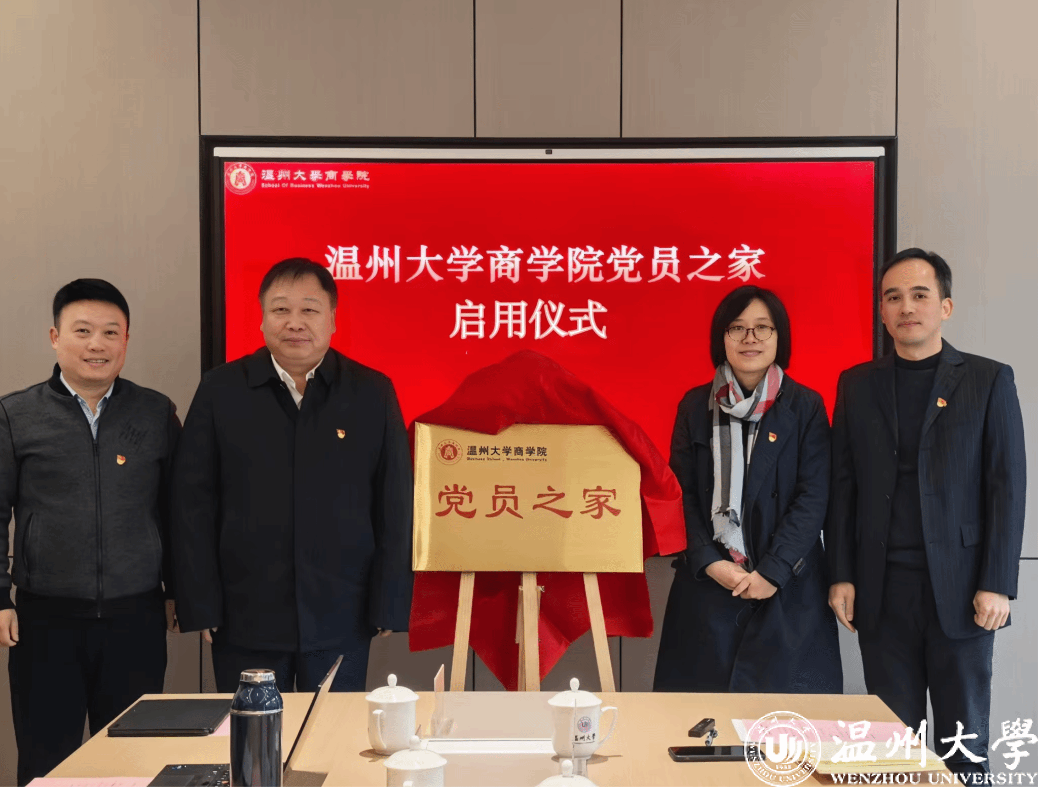 此次学习会前,还进行了商学院党员之家启用仪式,赵敏校长、韦小青副部长与学院领导班子一起为党员之家揭牌。