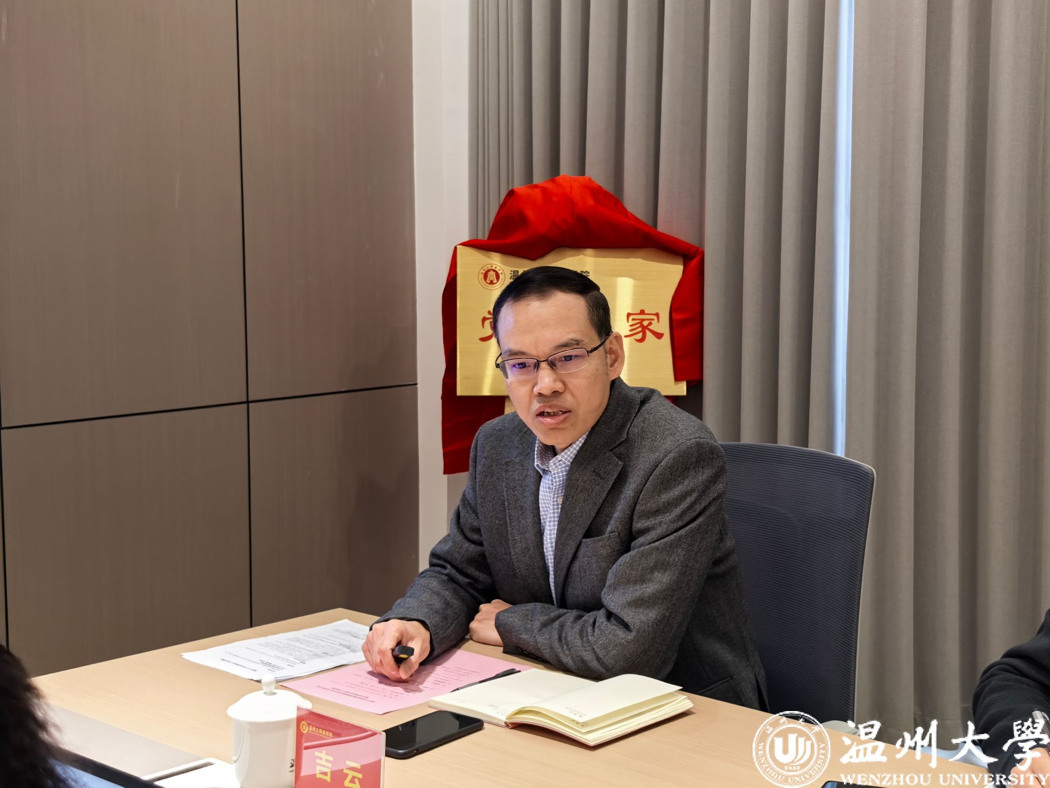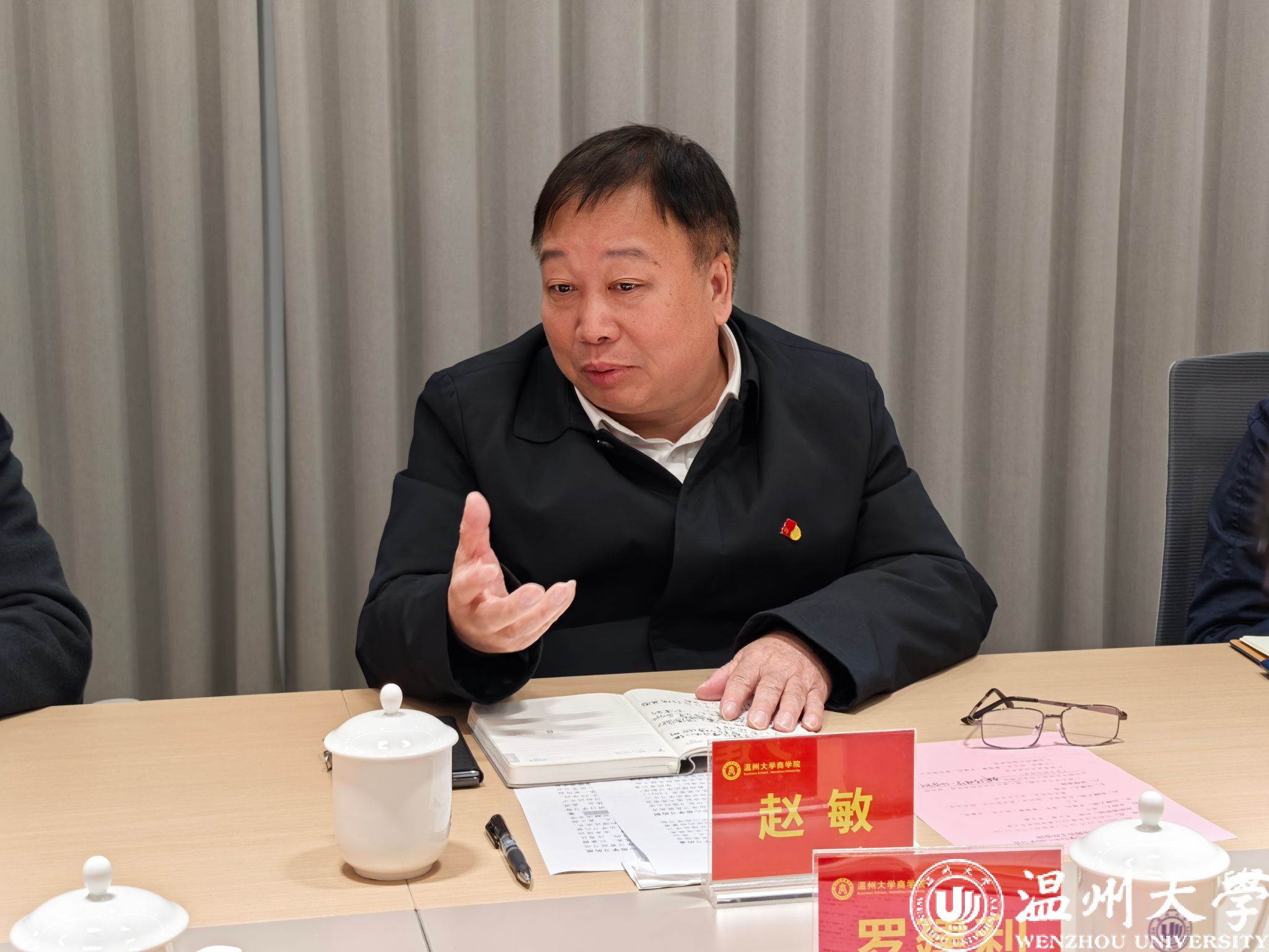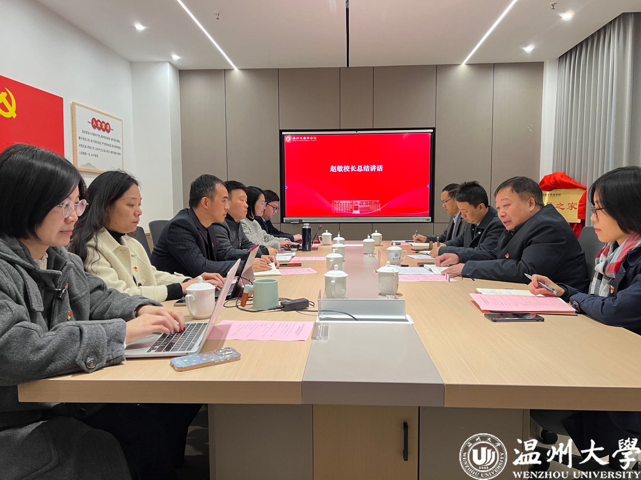 12月12日,商学院召开党委理论学习中心组(扩大)学习会,温州大学校长赵敏、宣传部副部长韦小青、党校办秘书科科长申业磊到会巡听旁听。学院党委理论学习中心组成员参加,专职组织员、党支部书记、各科室负责人参加学习会,会议由学院党委书记唐华主持。