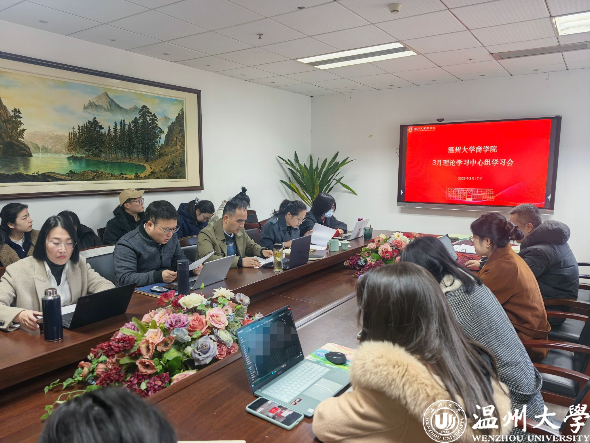 3月17日,商学院党委召开党委理论学习中心组(扩大)学习会,学院党委理论学习中心组成员参加,专职组织员、师生党支部书记参加学习会。会议由学院党委书记唐华主持。
