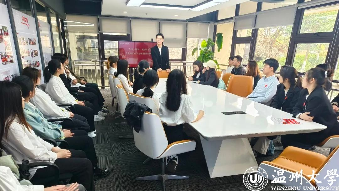 在瓯江红党建人才中心,党支部书记张春洋以“传承红色基因,担当时代使命”为主题开展专题党课。课程紧密结合2025年全国两会精神,重点解读了教育现代化、乡村振兴等国家战略部署。针对支部学生党员特点,课程设置了“红色商道案例分析”“新时代青年责任”等互动环节,引导学生将专业学习与国家发展需求相结合。并且现场学生通过扫码参与线上答题,实时检验学习成效。