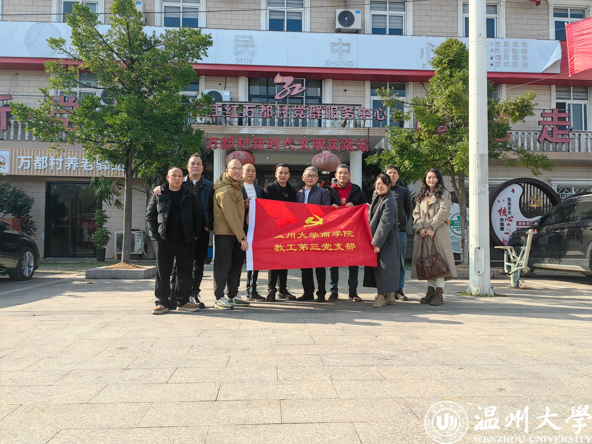 为深入学习贯彻习近平总书记在中央政治局民主生活会上的重要讲话精神,以党建联建搭建实践桥梁,2026年1月6日温州大学经济管理学院教工第三党支部组织党员干部走访平阳县万全镇万都村(原冯宅村)开展交流活动,实地探寻乡村党建密码,共绘青春助农愿景。