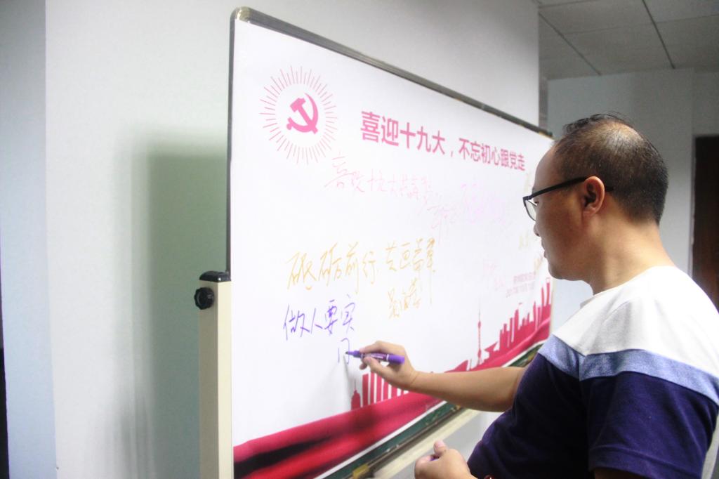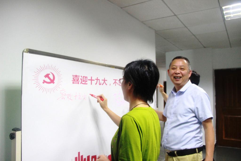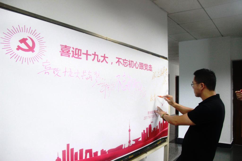 昨日,我院党总支组织开展了“喜迎十九大”主题党日签名活动。院领导班子成员、党总支委员、各教工支部书记等教师代表在“喜迎十九大,不忘初心跟党走”签名版上畅所欲言,写下了对祖国母亲的深深祝福。