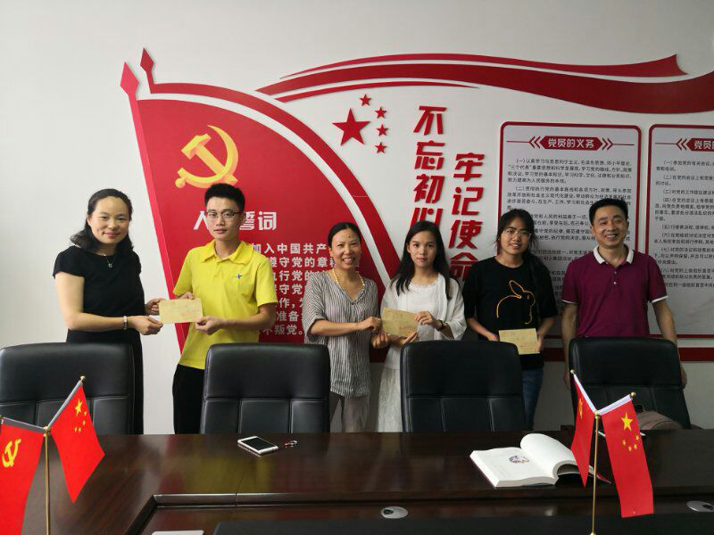 活动上,支部党员老师为支部对接的贫困学生送去了一张张暑期“回家的票”,这些车票是用特殊党费购买的,饱含老师们的拳拳爱心。会上,党员老师还与同学们进行了亲切交流,关心同学们的学习生活情况。了解到其中一位同学已经是入党积极分子,另外一位同学已经通过党校学习顺利结业,老师们嘱咐同学们继续保持积极向上的心态处理好学习和生活的事情,保持与老师的积极联系。