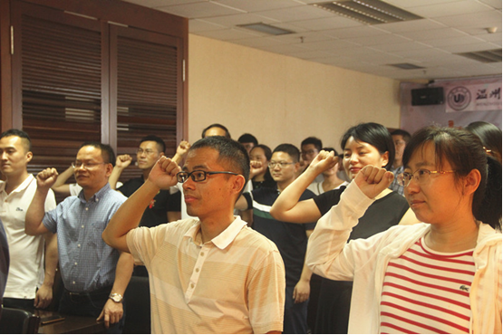 在郑书记简短凝练的介绍了本次会议主题之后,刘开练副书记带领全体师生党员重温入党誓词,师生们面对党旗,铿锵饱满地宣誓。郑彩莲老师指出,希望全体师生党员通过重温入党誓词活动,经常加以对照,做工作与学习上的典范。