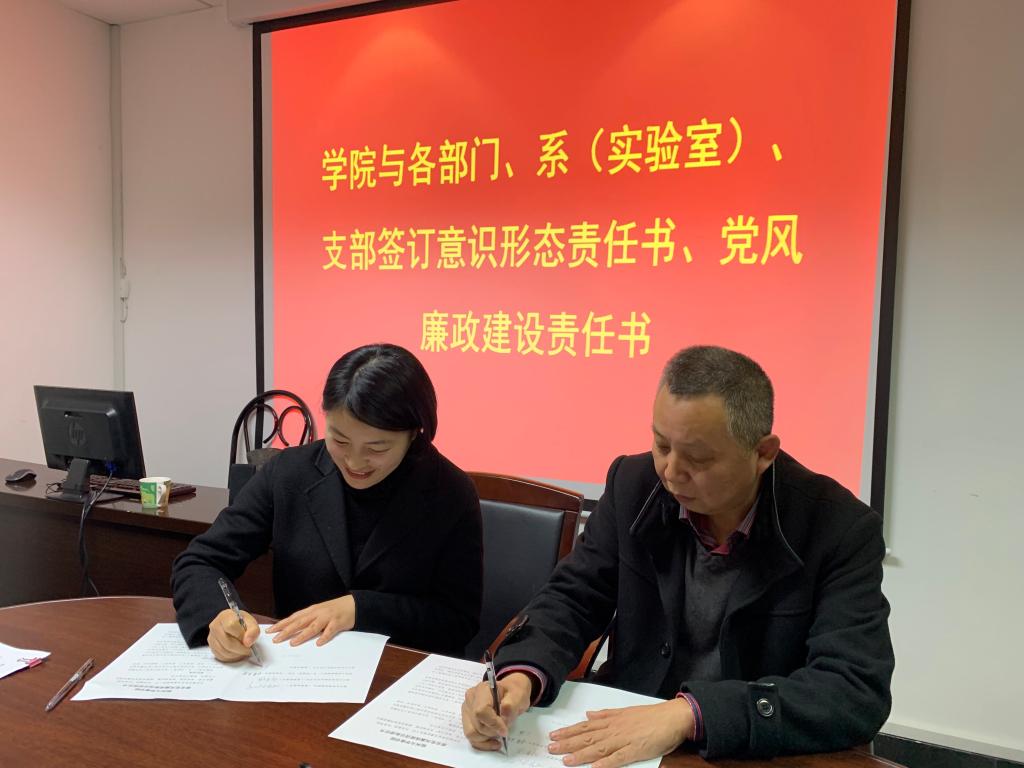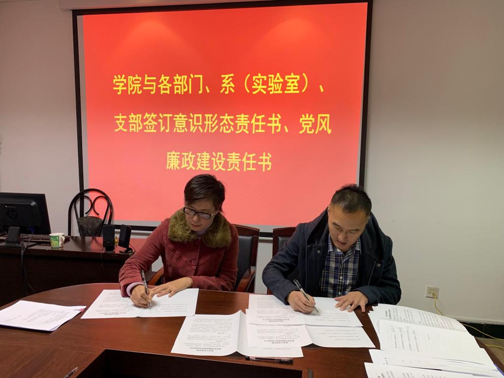 各系、室负责人与各支部书记与院长、书记分别签订党风廉政建设协议书和意识形态责任书