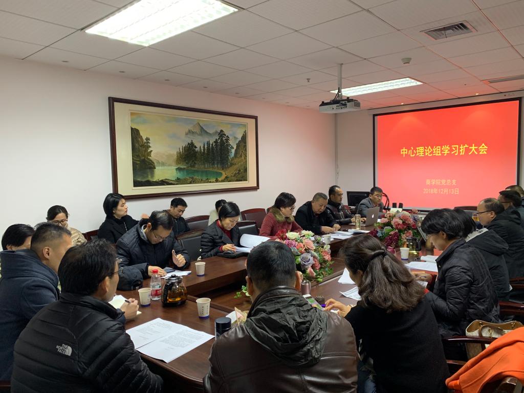 2018年12月13日下午,我院召开中心理论组学习扩大会,院党总支书记郑彩莲,院长胡振华,副书记刘开练,副院长罗建利,各系、室负责人、各总支委员及支部书记参加会议。会议由郑彩莲书记主持。