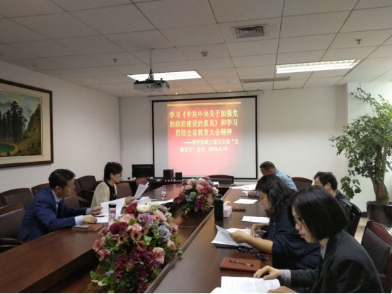为深入学习习近平新时代中国特色社会主义思想和党的十九大精神,切实加强党的政治建设,坚持和加强党的全面领导,推进全面从严治党向纵深发展,不断提高党的执政能力和领导水平,确保全党统一意志、统一行动、步调一致向前进,商学院教工第五党支部于2019年4月19日上午在学院222会议室召开政治理论学习会。