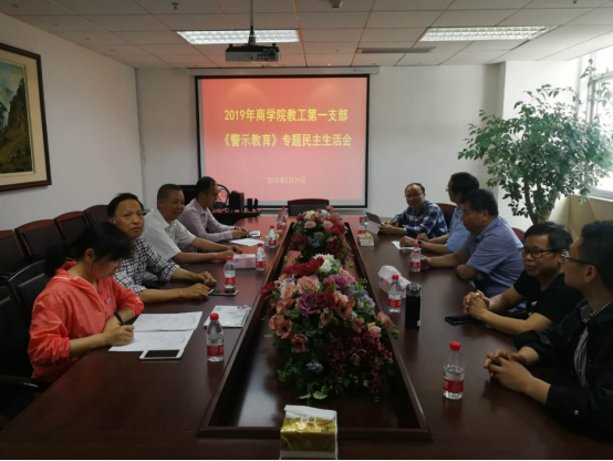 根据中共温州市委组织部《关于以警示教育为主题过好一次组织生活的通知》(温组传〔2019〕12号)和学校组织部、学院党总支的要求,2019年5月30日下午商学院教工第一支部在A222召开以“警示教育”为主题的组织生活会,会议由支部书记周建华主持。