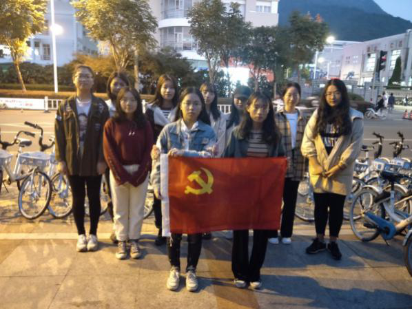 2019年11月9日下午及11日上午,为了践行“不忘初心,牢记使命”的主题教育,发扬“全心全意为人民服务”的精神,第一小组包括梁雨桐,朱艳雯,屠雁,罗小情,史宜灵,林雪,陆恺怡,周巧红,卢君丽,陆文静共十位成员,开展了整理共享单车和布置商学院迎新晚会的志愿者活动。