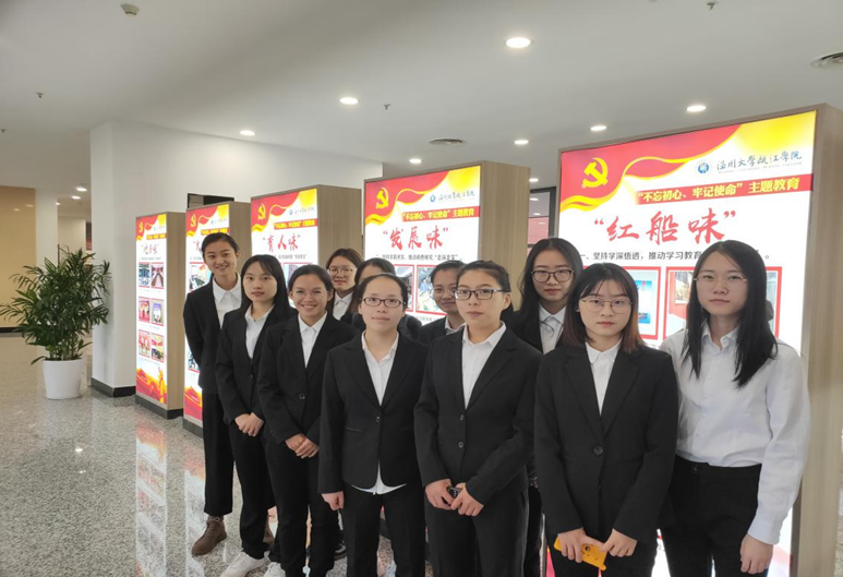 为了更好的学习“红船”精神,传承红色基因,弘扬红色文化,2019年11月9号下午,作为学习参观的对象,我们实践小组来到了温州大学瓯江学院“瓯江红”实践基地参观展览,重温入党誓词,回顾建党历史,吸收党建知识,继承并发扬“敢为人先”的精神。
