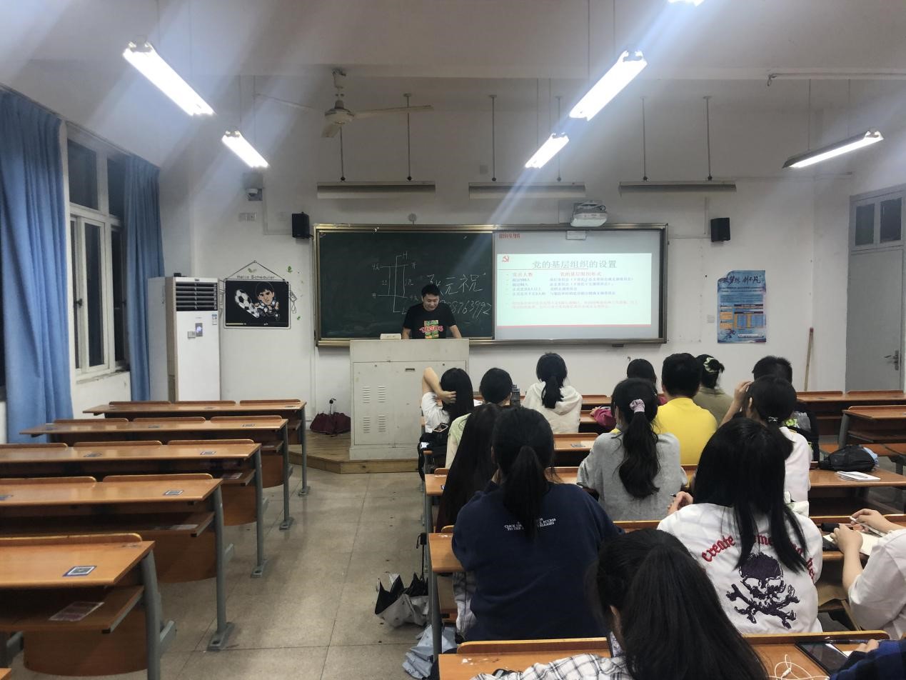 紧接着,张元祝老师将党的组织生活通过ppt的方式呈现和讲解,让学生党员们充分了解和认识到党的组织生活的重要性和必要性。党的组织生活是党内政治生活的重要内容和载体,是党组织对党员进行教育管理监督的重要形式,每个党员必须参加党的组织生活;同时,每个党员也要严格按照“三会一课”制度、民主生活会和组织生活会制度、谈心谈话制度、民主评议党员制度等新形势下党内政治生活的若干准则来参加党的组织生活。党章中明确提出了“严格党的组织生活”要求。学生党员作为党员中的中坚力量也应该严格落实、积极参与党的组织生活。