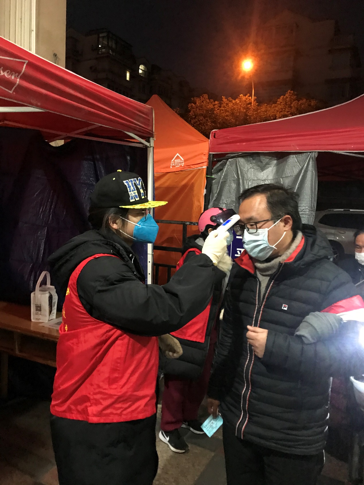 18级金融工程的孔嘉辉同学担任家乡志愿服务工作,他起初认为,作为免疫力更强的年轻人理应主动为家乡作贡献,而后,不论是父母的支持,还是感恩于前线医护人员的无私,都使他更加坚定。“通过这件事,我深感于我们村的凝聚力,而我们村只是中国的一个缩影。全国人民都正像我们一样,积极配合工作人员的安排。在大灾大难面前,靠的就是有条不紊的冷静,永不放弃的信心和团结一致的决心。温总理曾在北川中学的黑板上写下‘多难兴邦’,我相信春暖花开的时候,中国还是那个强大的中国。”孔嘉辉同学的工作主要是测量过往人员体温、劝返身份不明人员、推广杭州健康码、记录卡口人流量以及代收快递等。在这期间,寒潮来临几乎掀翻卡口的帐篷,体温计也偶尔“失灵”,脆弱的老年人备受疫情威胁,但好在孔嘉辉同学都坚持了下来,积极解决工作期间的各种问题。