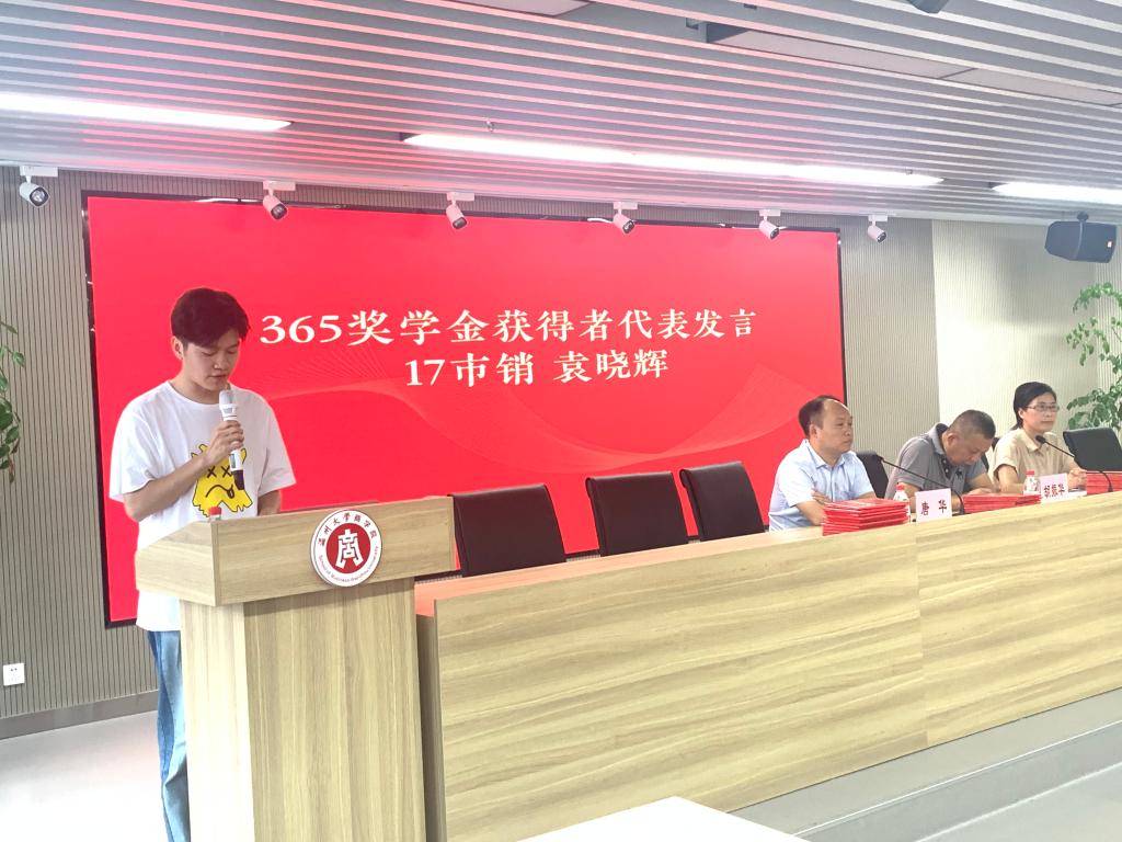 仪式上首先由商学院学工办副主任周洁文对“博联奖学金”和“365奖学金”的设立初衷,和本次奖学金评选情况进行说明,并向优秀校友钱旦初先生、徐开晴先生和王仲辉先生表示感谢。受疫情影响,王仲辉校友通过视频方式,向所有学弟学妹们送上真挚祝福,并表达了对商院学子的学有所成的殷殷期盼。